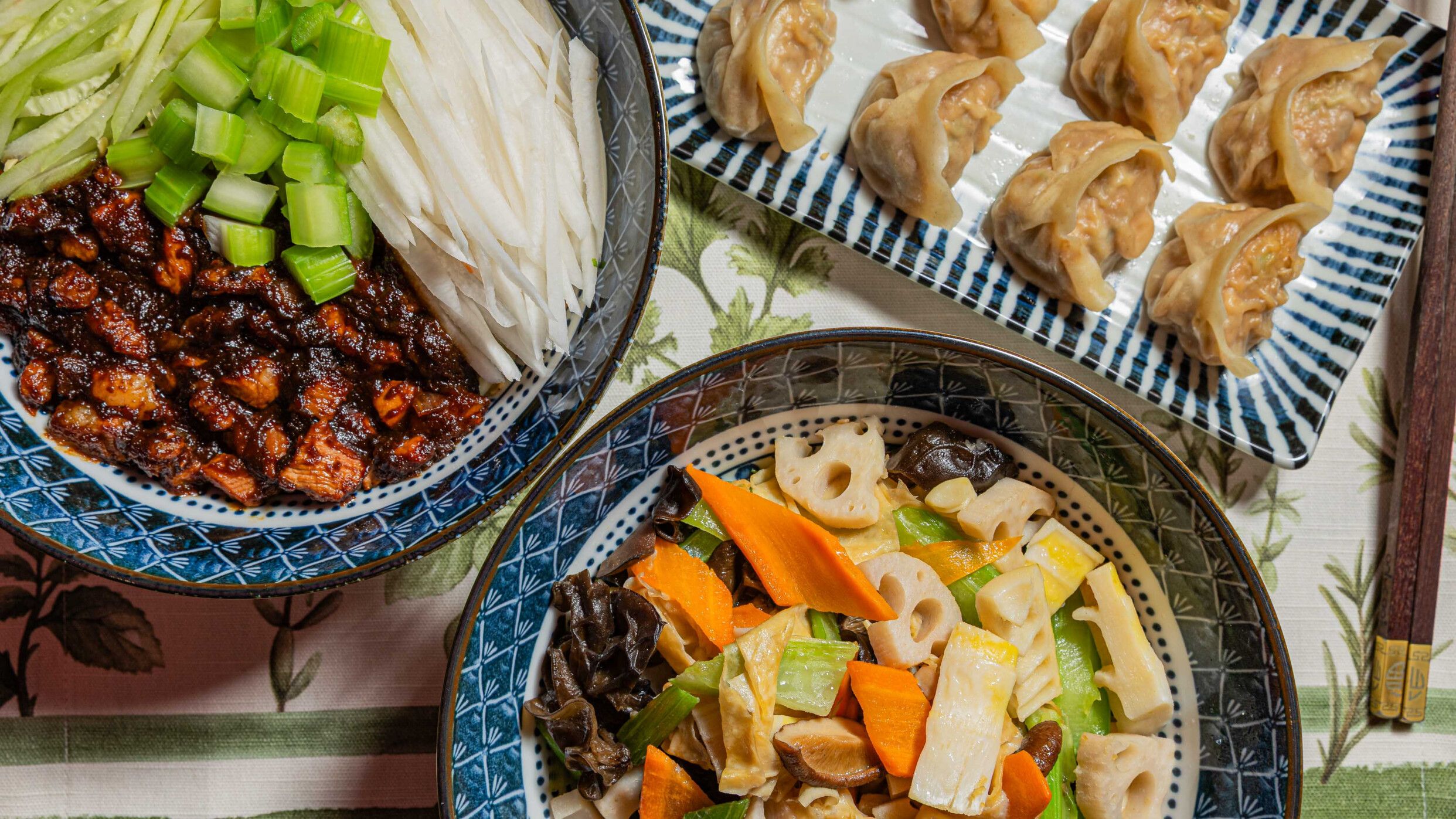 Riso con sedano, radice di loto, carote, germogli di bambù, funghi misti