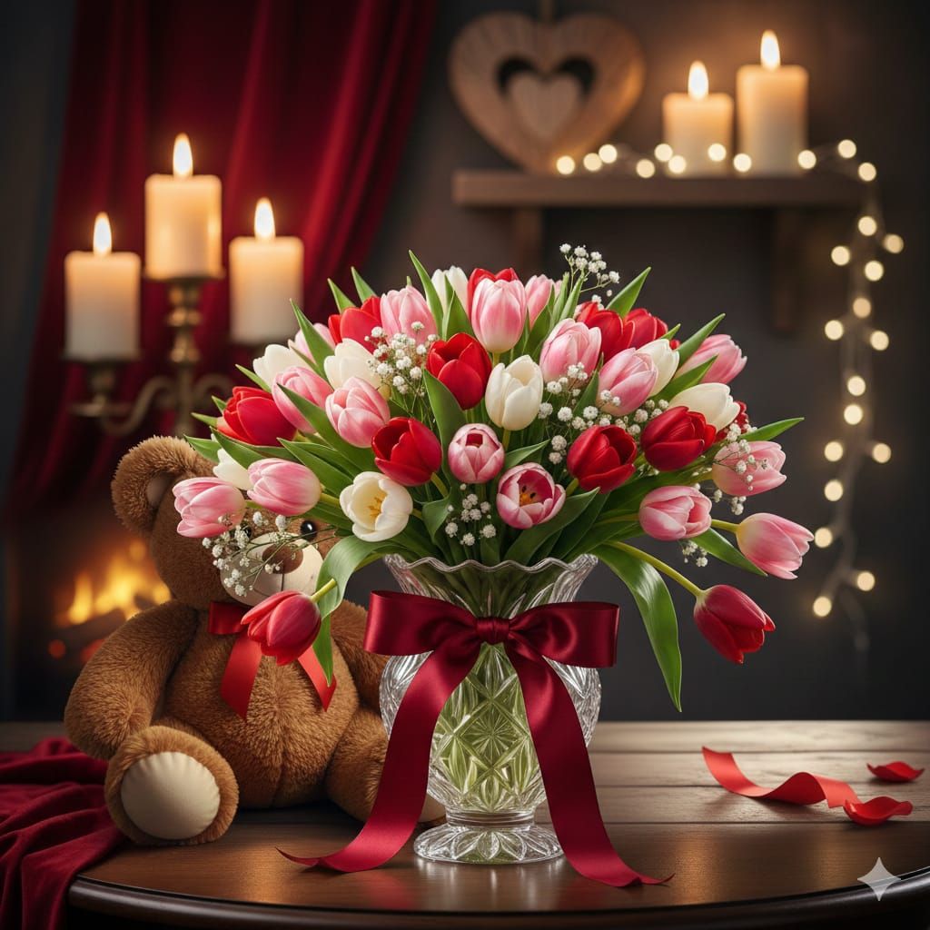 Rose rosse e Lisanthius con Teddy bear omaggio