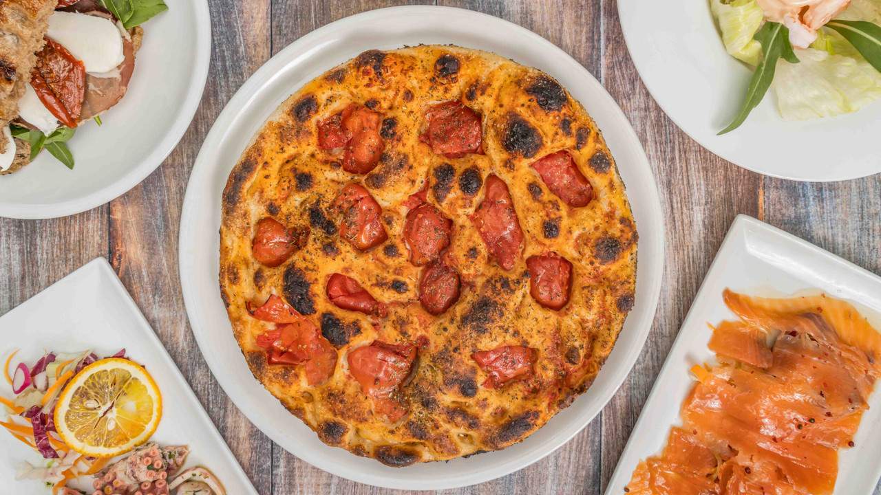 Pomodoro, mozzarella, capocollo, stracciatella e pomodori secchi