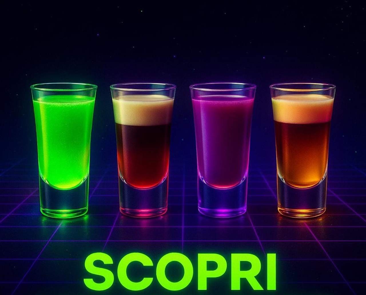 Uno shot con l’anima da lecca-lecca. Frutti tropicali, vodka e un cuore dolce da masticare fino alla fine.