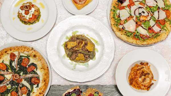 Fior di latte, alici, zucchine, stracciatella di burrata, scorza di limone e menta