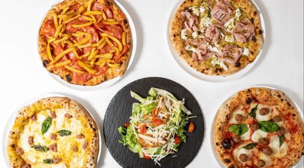 Pomodoro, mozzarella, prosciutto cotto, funghi, carciofi e olive