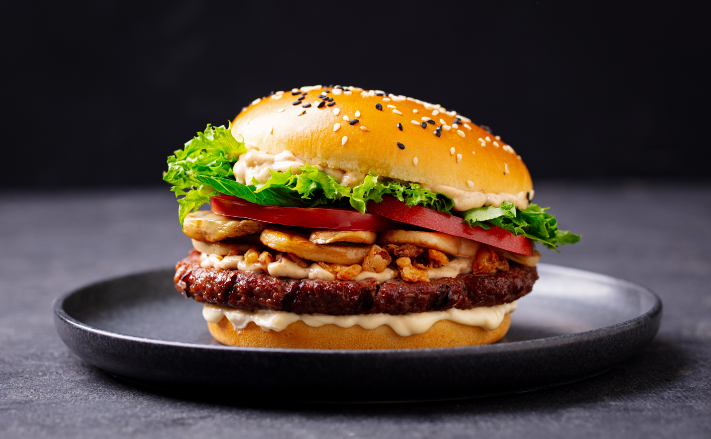 Hamburger, cheddar, uovo, bacon, insalata, pomodoro, BBQ