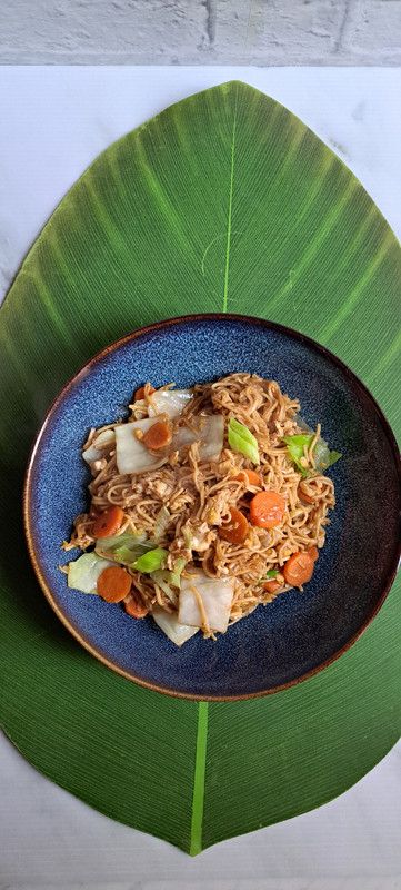 I noodles saltati in padella con uovo, verdure alla salsa di soia indonesiana (adatta per vegetariana)