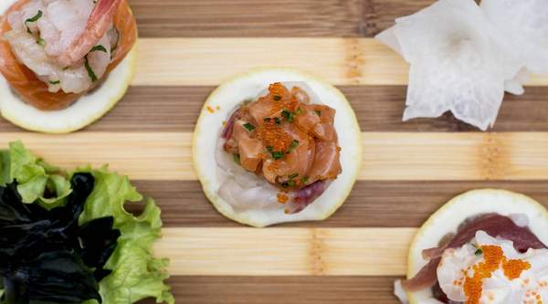 Salmone, tonno e ricciola scottati con maionese, tobiko e salsa dolce