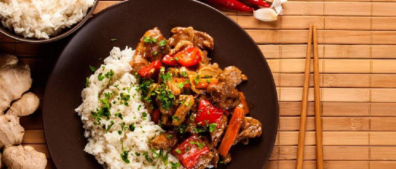 Spaghetti di riso con carne