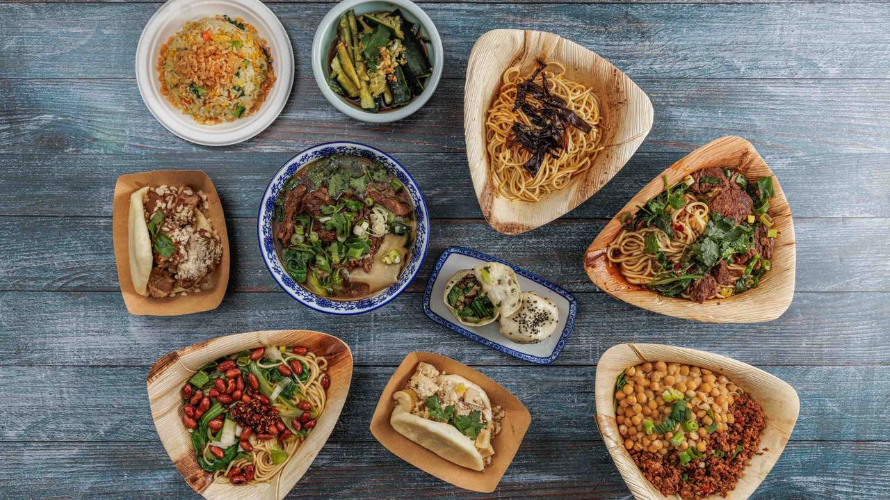 Mian in brodo piccante con brasato di manzo black angus grass fed, cavolo cinese, cipollotto, coriandolo, spezie e salsa con fave. Leggermente piccante