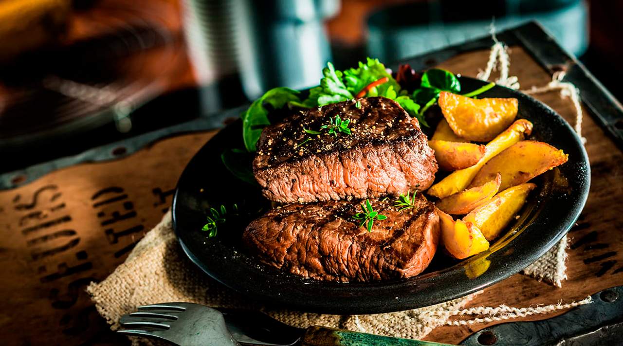 280 g di picanha sudamericana accompagnata da feijoada, fagioli neri cotti con vari tipi di carne di manzo e maiale, riso bianco brasiliano, sono inclusi i condimenti brasiliani farofa e vinagrette. (senza glutine)