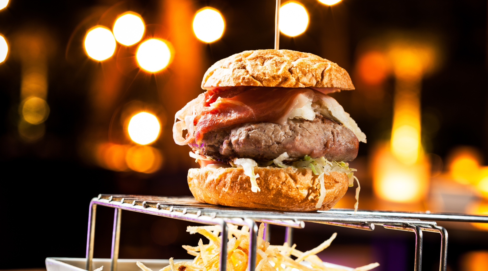 Manzo, lattuga, pomodoro, bbq, cheddar, bacon, uovo occhio di bue