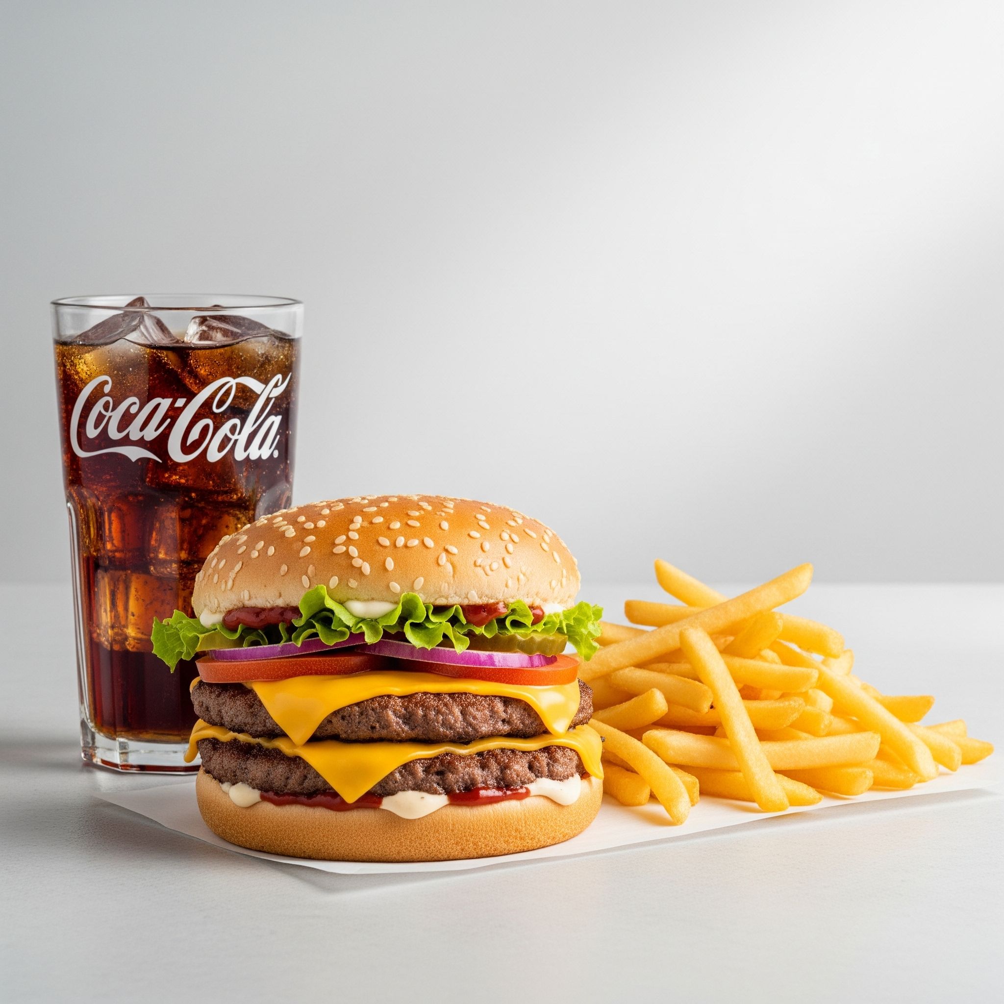 Pizza Margherita, patatine fritte, bibita in lattina, 33 cl