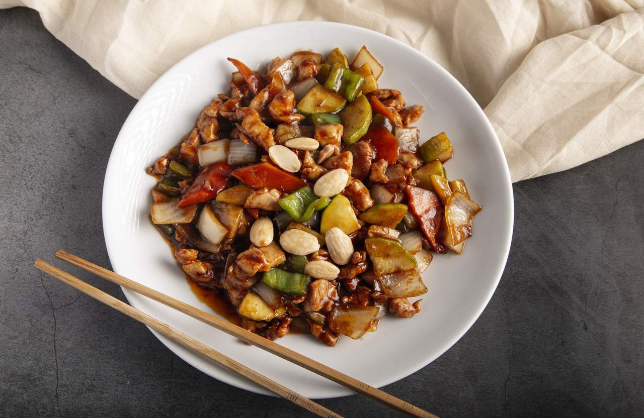 Pollo Gamberi manzo e spaghetti di riso fritti