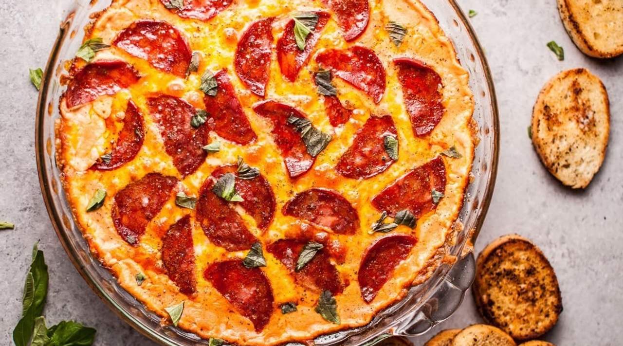 Pomodoro, mozzarella, salsiccia, peperoni, cipolla