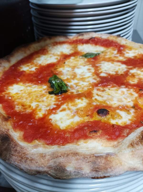 Pomodoro, mozzarella, prosciutto cotto, peperoni, alici, capperi, olive, basilico, olio Evo