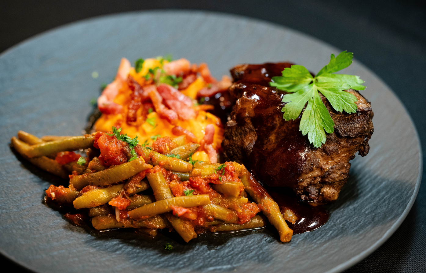 Salsiccia a punta di coltello, friarelli ripassati, provola di Agerola, basilico e olio EVO