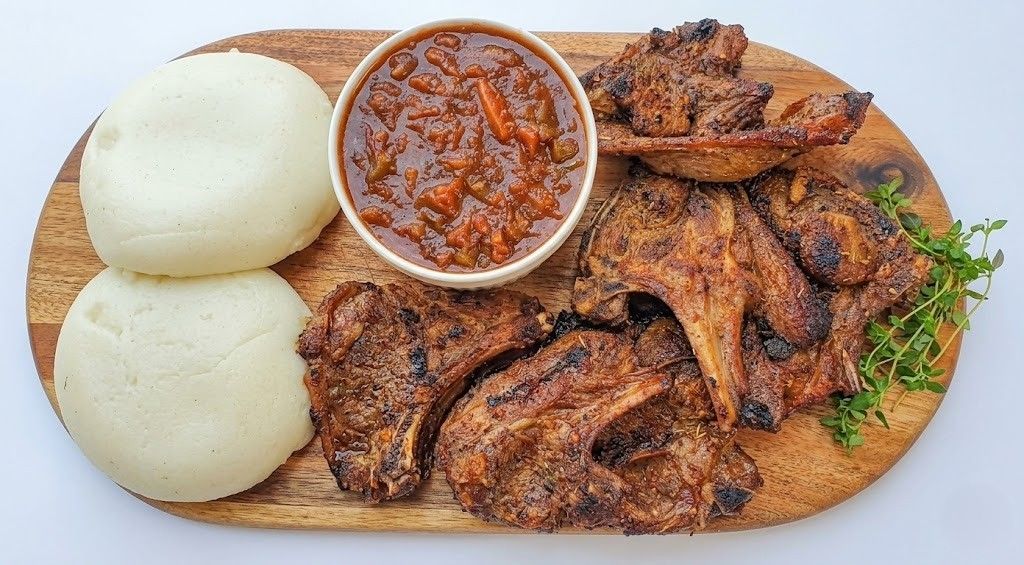Slow-braised beef shank, fall-off-the-bone tender, simmered in a hearty tomato, herb, and spinach. Rich in protein, iron, and collagen. served with rice, ugali or chapati