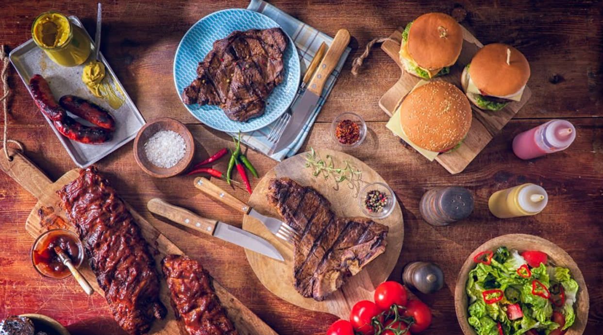 2 Beef Patties, Mozzarella Cheese, Caramalized Onions, Sauces, Lettuce And Cucumbers