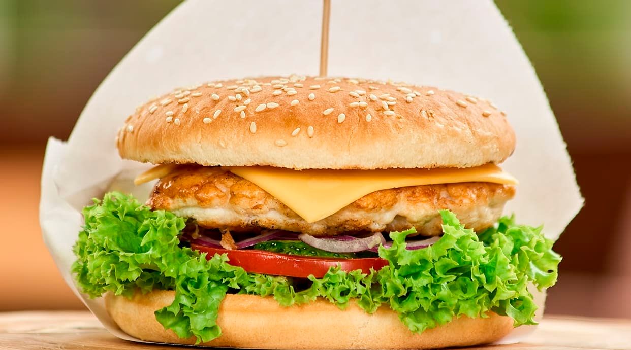 Juicy beef patty topped with caramelized onions, cheese & bacon.