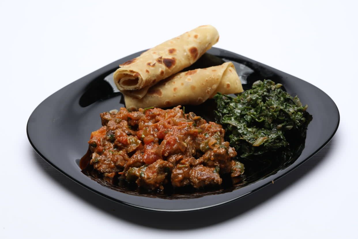 Tender steamed green bananas infused with traditional East African spices.