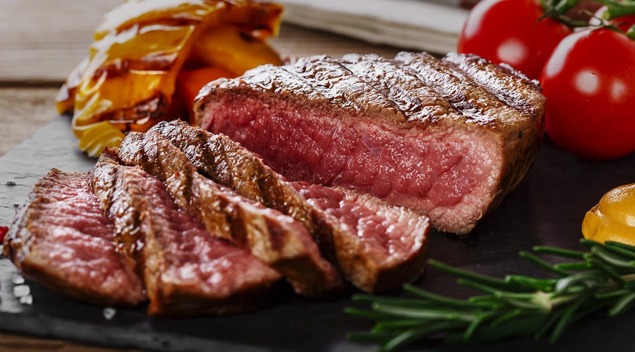 Braising steak, potatoes, red pepper, caraway seeds, tomato