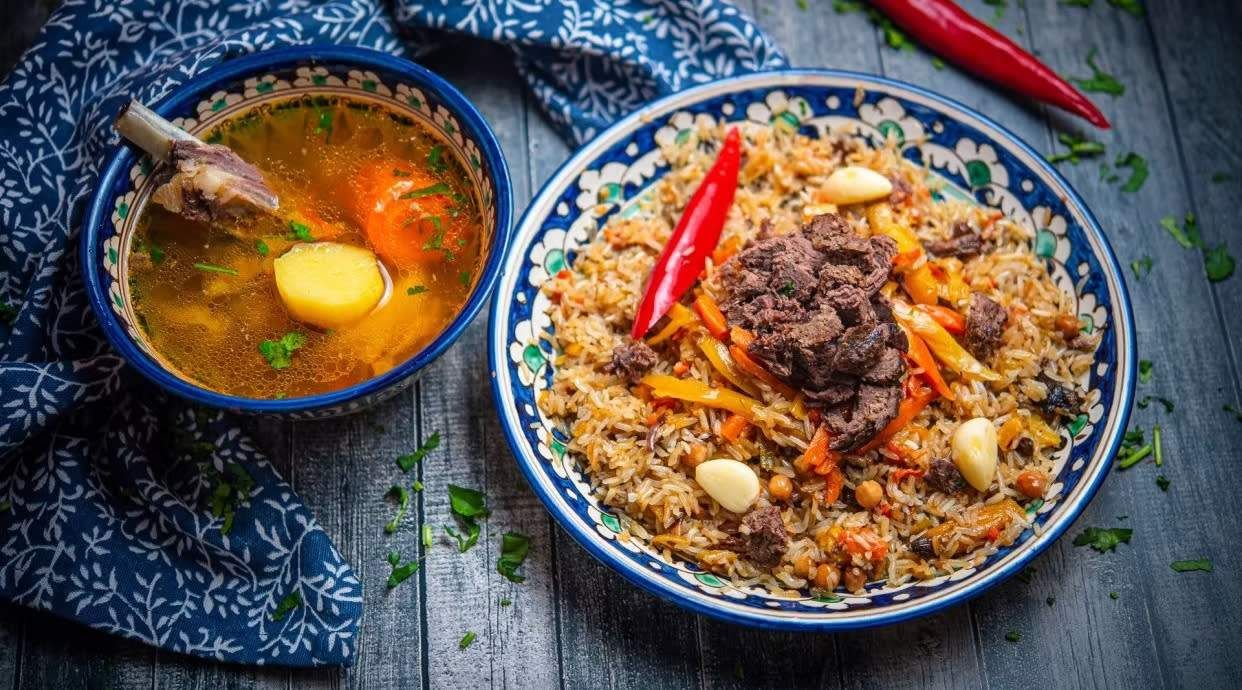 Традиционный узбекский суп с рисом, мясом и овощами. Согревающий, ароматный и сытный выбор для обеда.