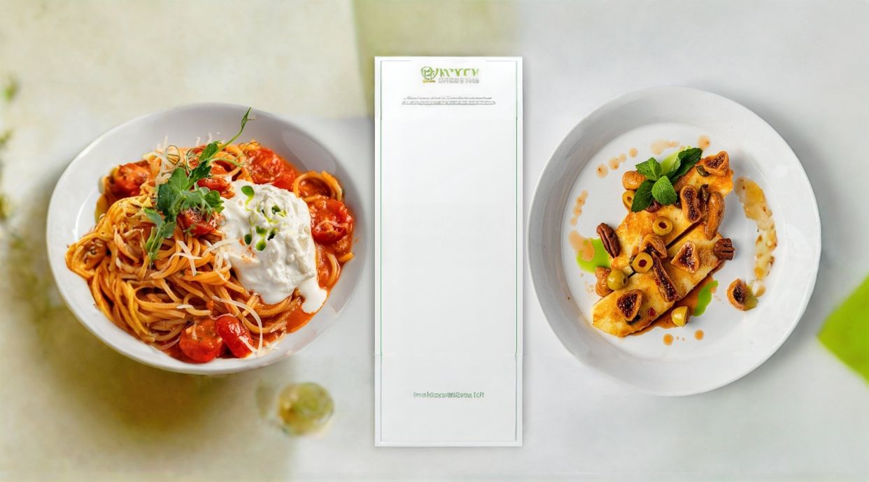 Спагетти, соус на основе шпината, сыр страччатела, помидоры