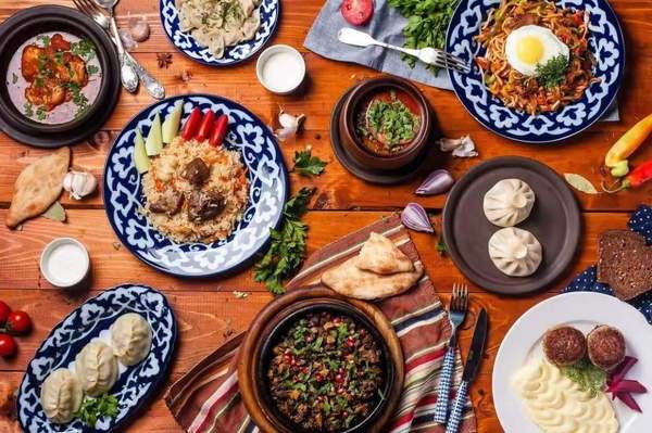 Гюро лагман — обжаренное мясо с овощами в ароматном соусе, подаётся с домашней лапшой.