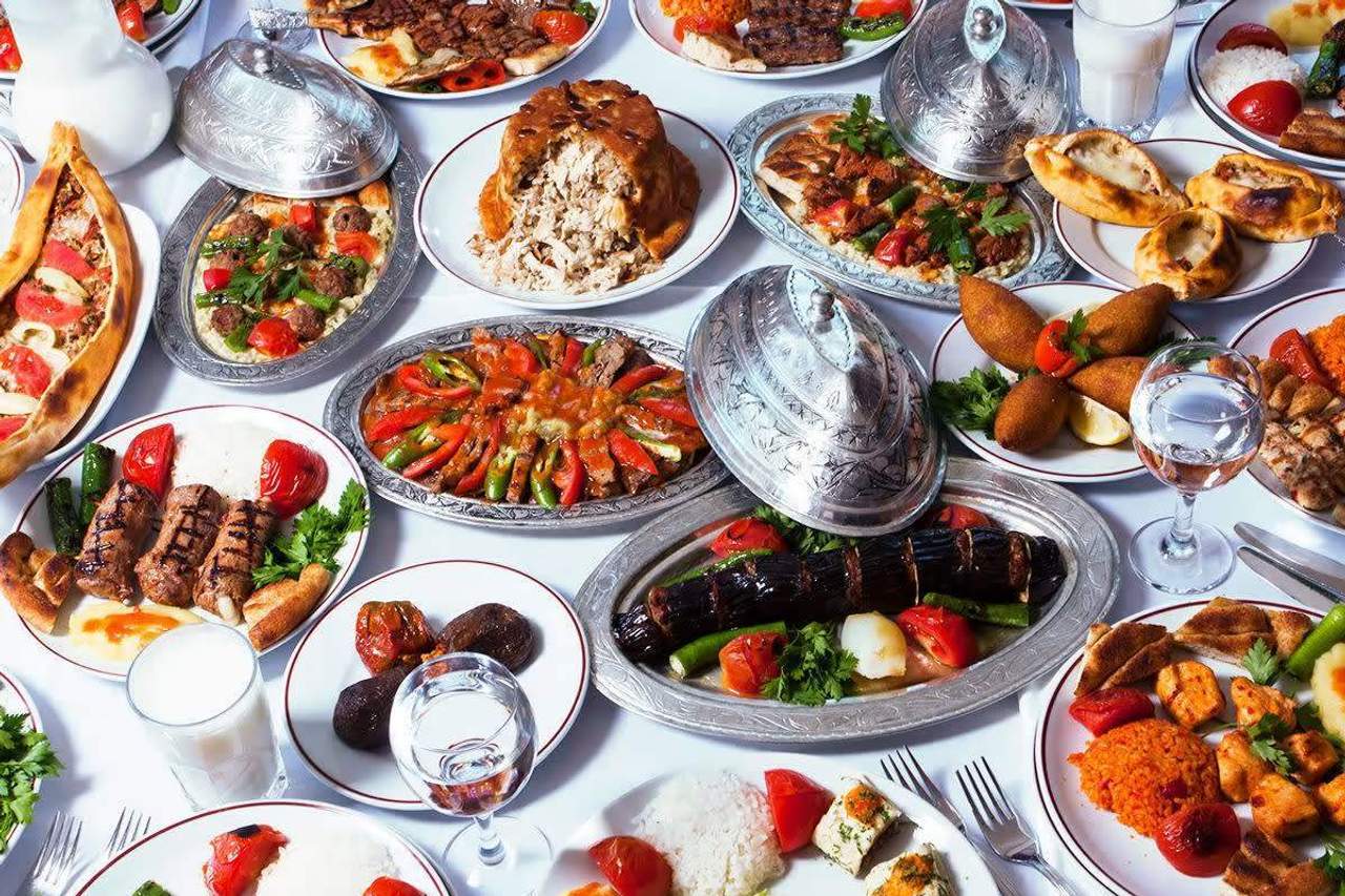 Жареная телятина, лук, картофель, болгарские перцы помидоры, лук красный, кунжут, черный хлеб маринованныи острыи перчик
