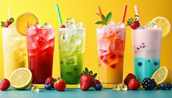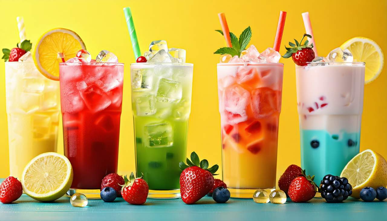 Натуральное пюре клубника, натуральное пюре маракуйя, зеленый чай, тапиоки, лед