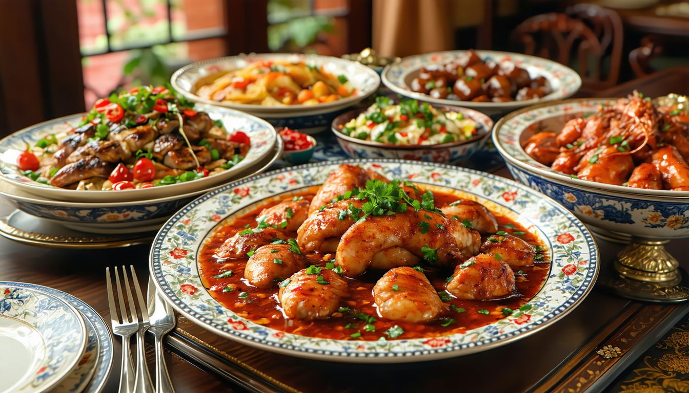 Баклажаны, помидоры, зелень, чеснок, кисло-сладкий соус