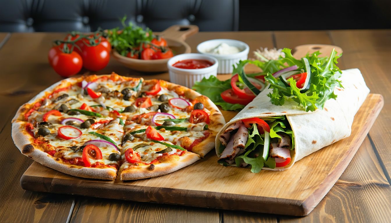 Ароматная пицца с шампиньонами и овощным дополнением.