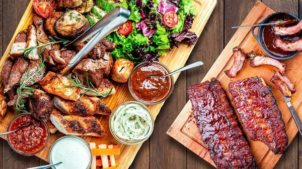 Côtelettes d'agneau , brochette de filet de boeuf , brochette de viande hachée