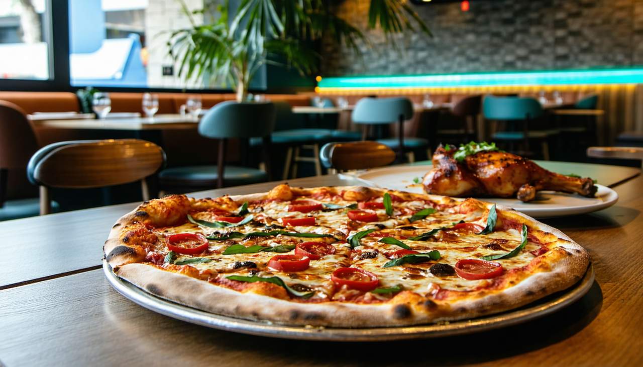 Thon, fruits de mer, poulet, charcuterie fumée, sauce, fromage, olive, poivron