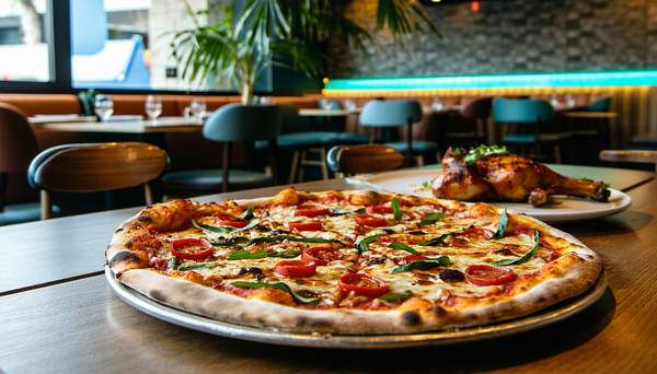 Sauce tomate, fromage, poivron, olive, thym, olive