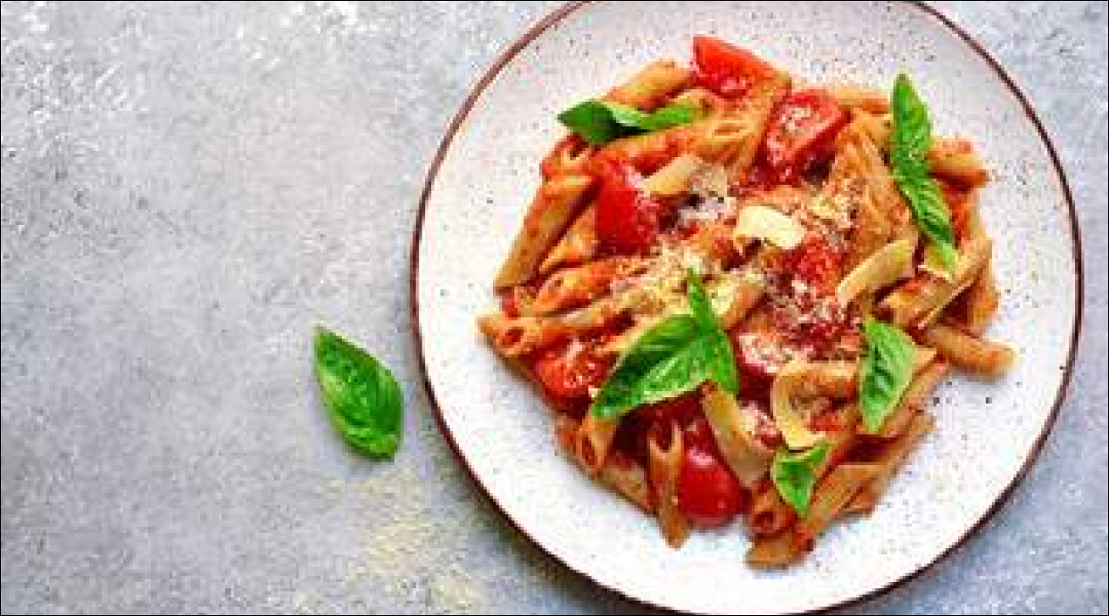 Escalope de poulet panée, légumes sautées, penne sauce blanche et frites