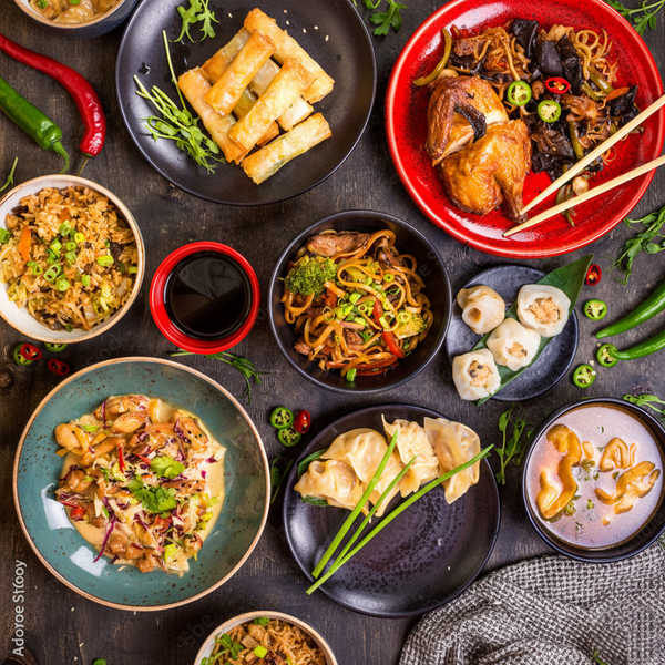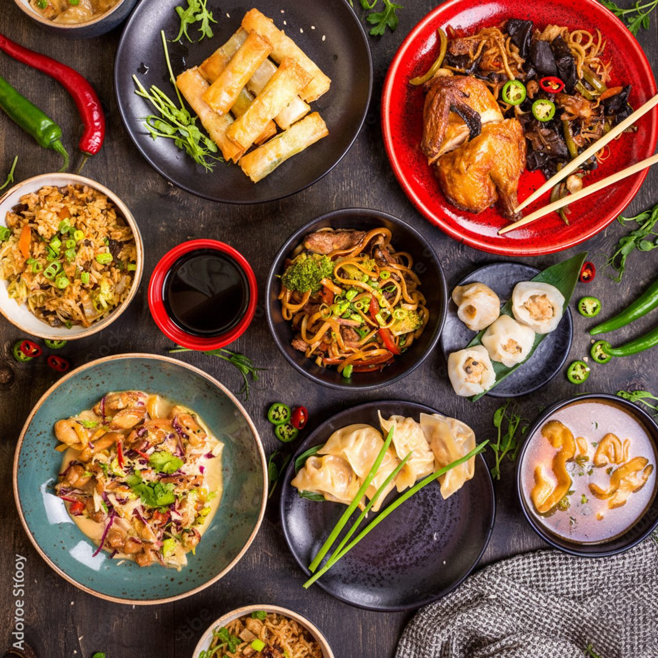 Légumes, crevette, poulet, bœuf, champignon Paris, nouilles