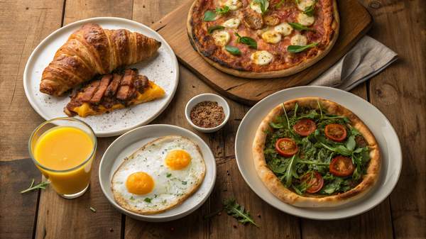Fruit de mer, poulet, viande hachée, jambon, mozzarella, olive, champignon
