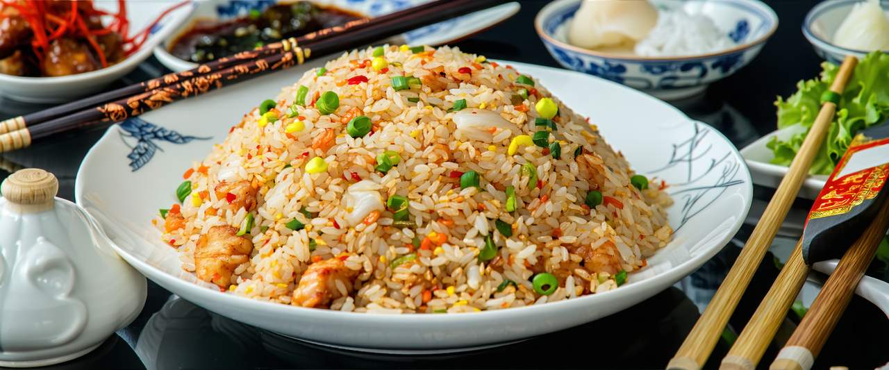 Riz basmati,champignon,sauce saté,crevette,calamar