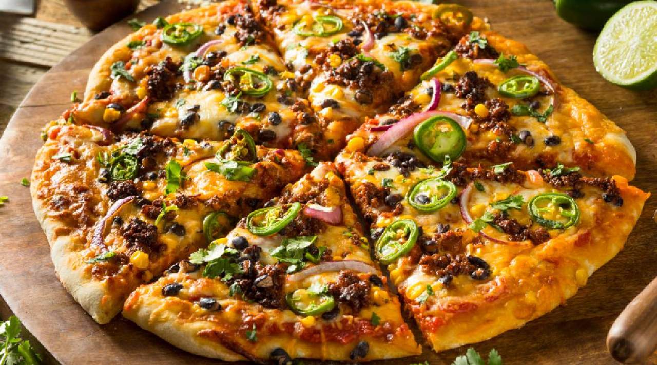 Légumes grillés, olives noires, mozzarella, sauce tomate