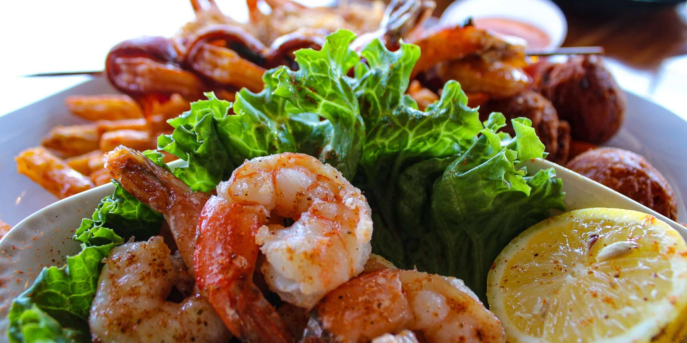 Une présentation élégante de crevettes fraîches, grillées et disposées en cercle. Légèrement salées et garnies de quartiers de citron pour une explosion de saveurs simples et authentiques