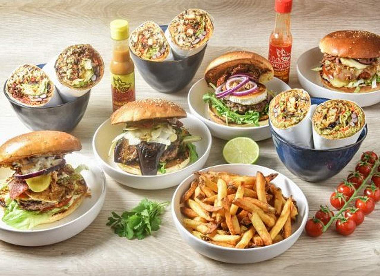 Steek viande hachée, cheddar, laitue, oignon, tomate