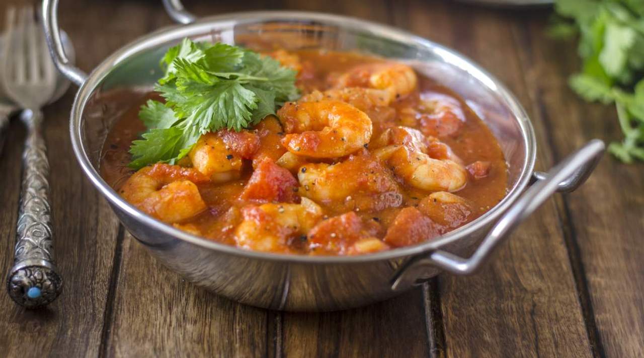 Crevettes juteuses mijotées dans une sauce épicée riche à base de tomates et d'oignons, parfumée avec des épices indien et des herbes aromatiques. Un plat principal de fruits de mer délicieux avec une explosion de saveurs indiennes authentiques.