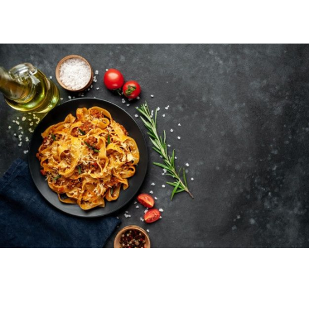 Pâtes à la viande hachée et aux boulettes de poulet avec sauce tomate et basilic