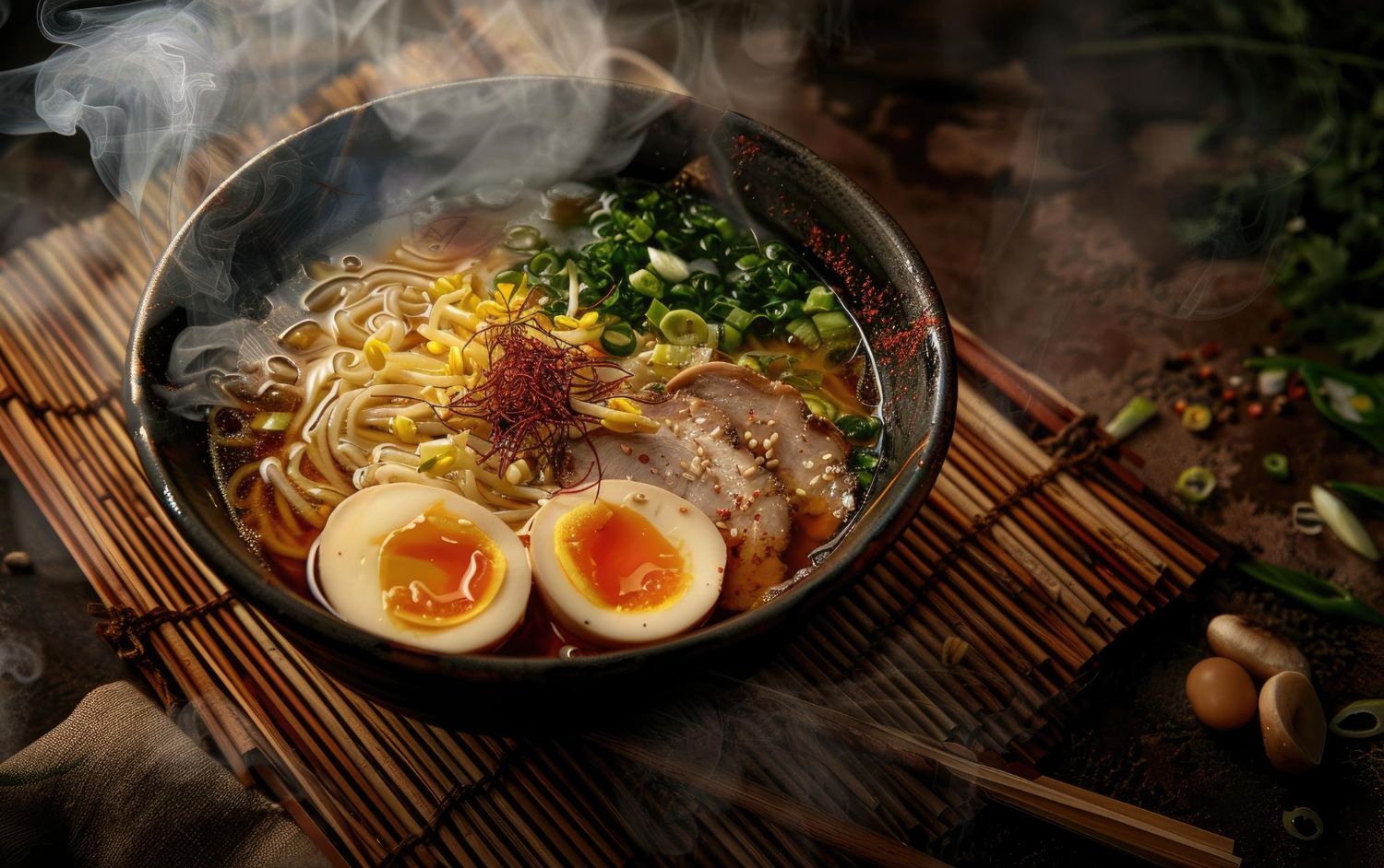 Taitei facuti manual,coasta de porc,Ajitama,ciuperci de lemne,bok choy
