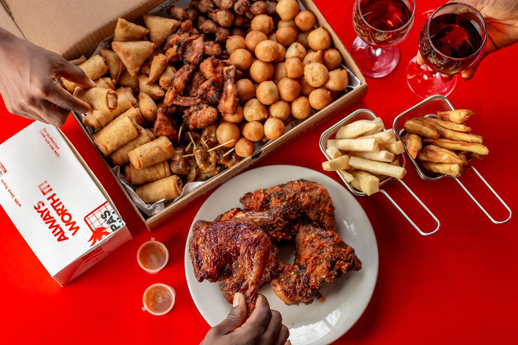 Comes with 15 samosas 15 spring rolls 15 pcs chicken 50 puff puff 50 mosa & 10 gizzard