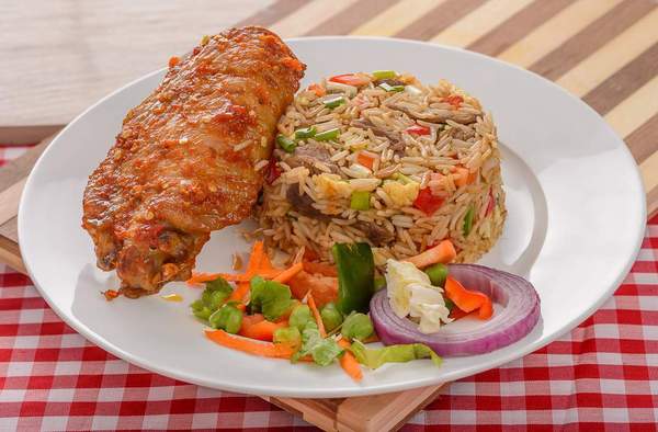Short grain nigerian rice cooked with freshly grounded tomatoes and pepper mix