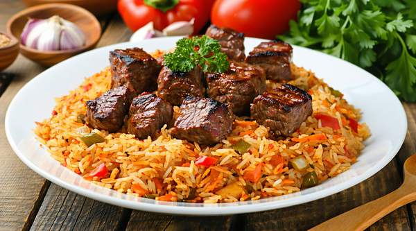 Perfectly steamed white rice served with a spicy, authentic Yoruba-style pepper stew (Obe Ata).