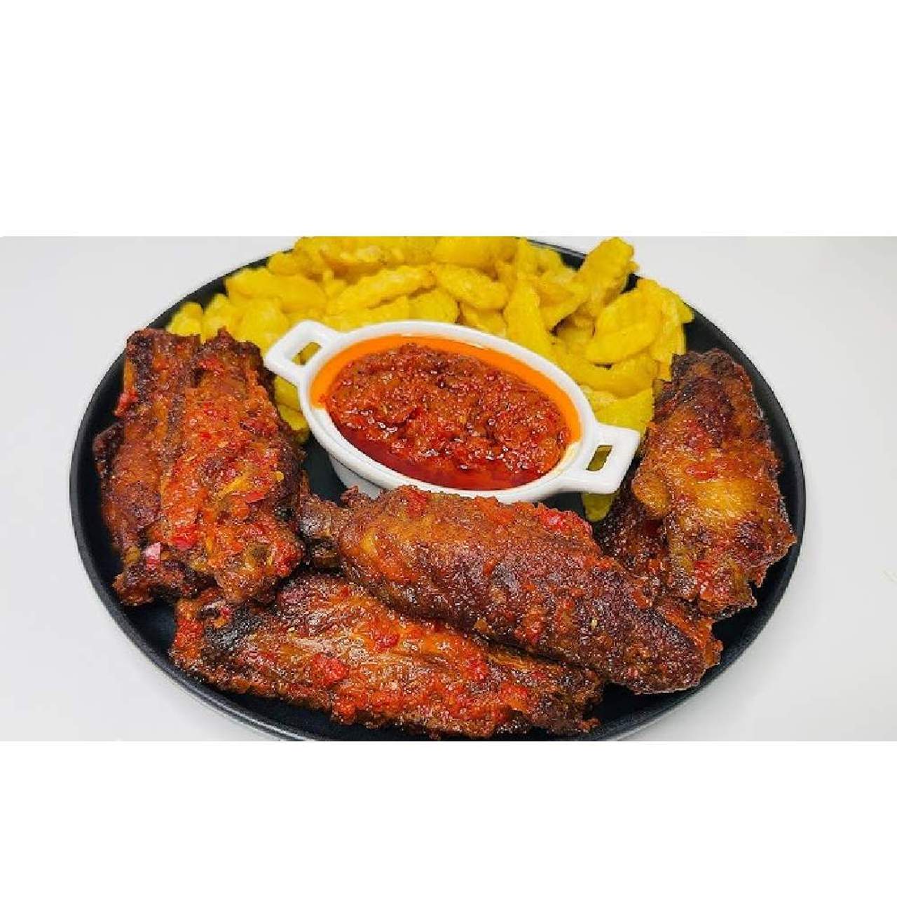 Grilled plantain, Grilled chicken with sauce