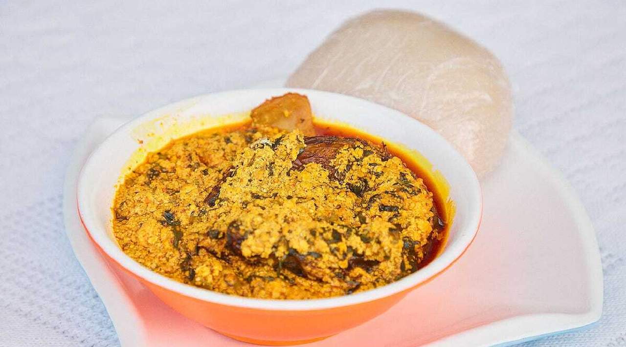A Portion Of Egusi Soup Served With Two Beef And Swallow Of Choice (Eba, Fufu, Semo, Pounded Yam)