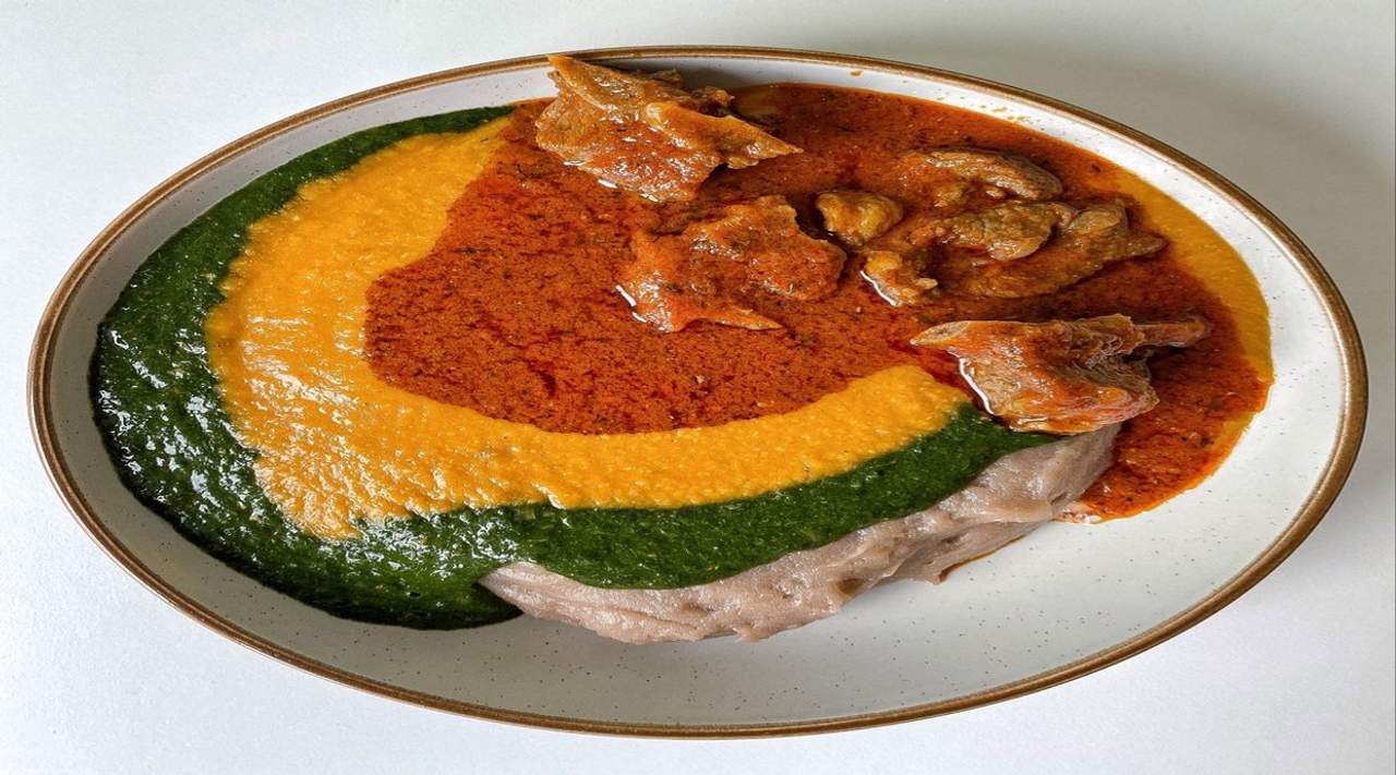 3 Wraps of amala served with gbegiri & ewedu, omi obe and ogunfe