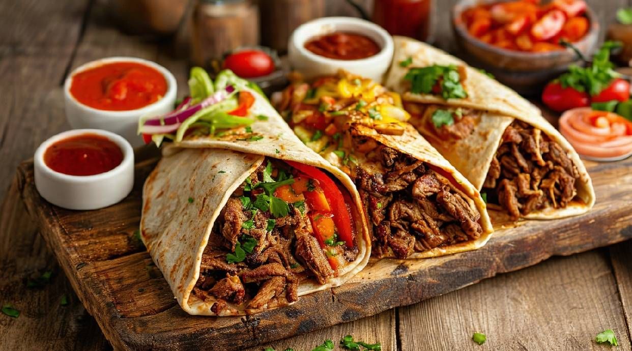 A hearty wrap loaded with chicken & beef, sausage, fresh veggies, and signature sauce